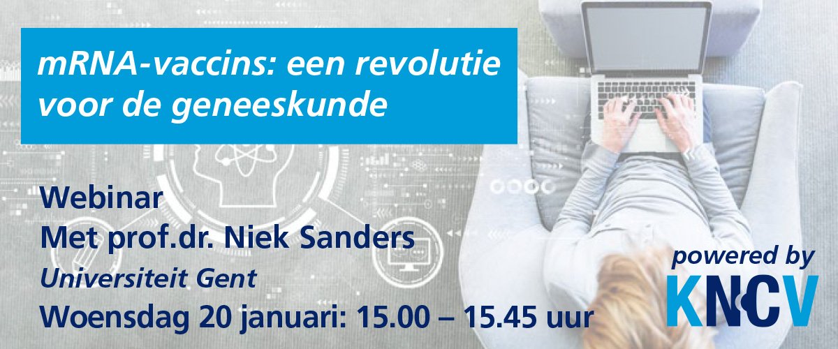 In deze webinar zal Prof. dr. Niek Sanders (Universiteit Gent) de chemische samenstelling van mRNA-vaccins en hun werkingsmechanisme bespreken. Hij zal toelichten waarom de bijwerkingen van de covid-19 (mRNA-)vaccins als een noodzakelijk ‘kwaad’ moeten worden beschouwd. Actuele thema’s met betrekking tot de covid-19 mRNA-vaccins, zoals de (overdreven) bezorgdheid rond ernstige allergische reacties en Bell’s palsy, zullen ook aan bod komen. Een positief gevolg van deze covid-19 pandemie is dat het een revolutie in de geneeskunde heeft gestart waarbij mRNA-vaccins en (programmeerbare) mRNA-geneesmiddelen een prominente rol zullen spelen. Aan het einde van de webinar bespreekt Sanders deze futuristische visie met enkele concrete voorbeelden.