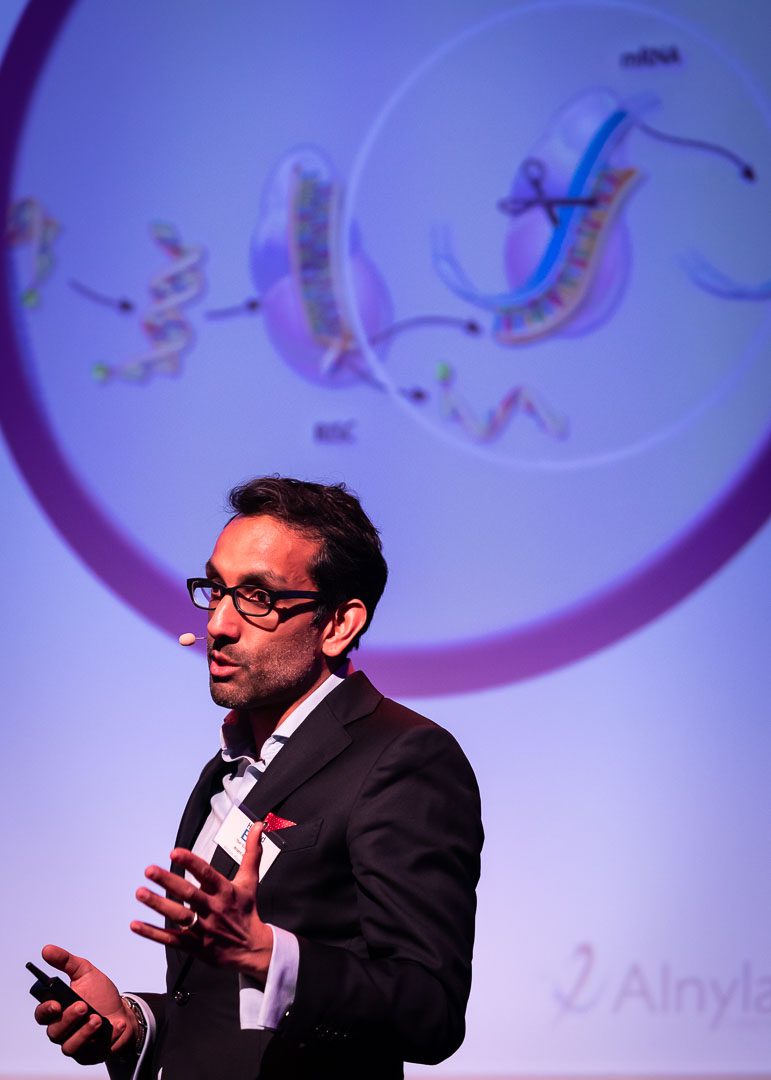 Anant Murthy, van Alnylam Pharmaceuticals, demonstreerde vervolgens hoe je dat doet: je verhaal vertellen. Als koploper in de ontwikkeling van een nieuwe generatie geneesmiddelen gebaseerd op RNA-technologie, legde Alnylam een verbluffende reis vol pieken en dalen af. Na meer dan zestien jaar pionieren, is nu eindelijk hun eerste behandeling binnen bereik van patiënten met polyneuropathie. En die eerste therapie opent de poort naar de toekomst, waarin Alnylam vele levens van patiënten met zeldzame genetische aandoeningen kan gaan verbeteren.