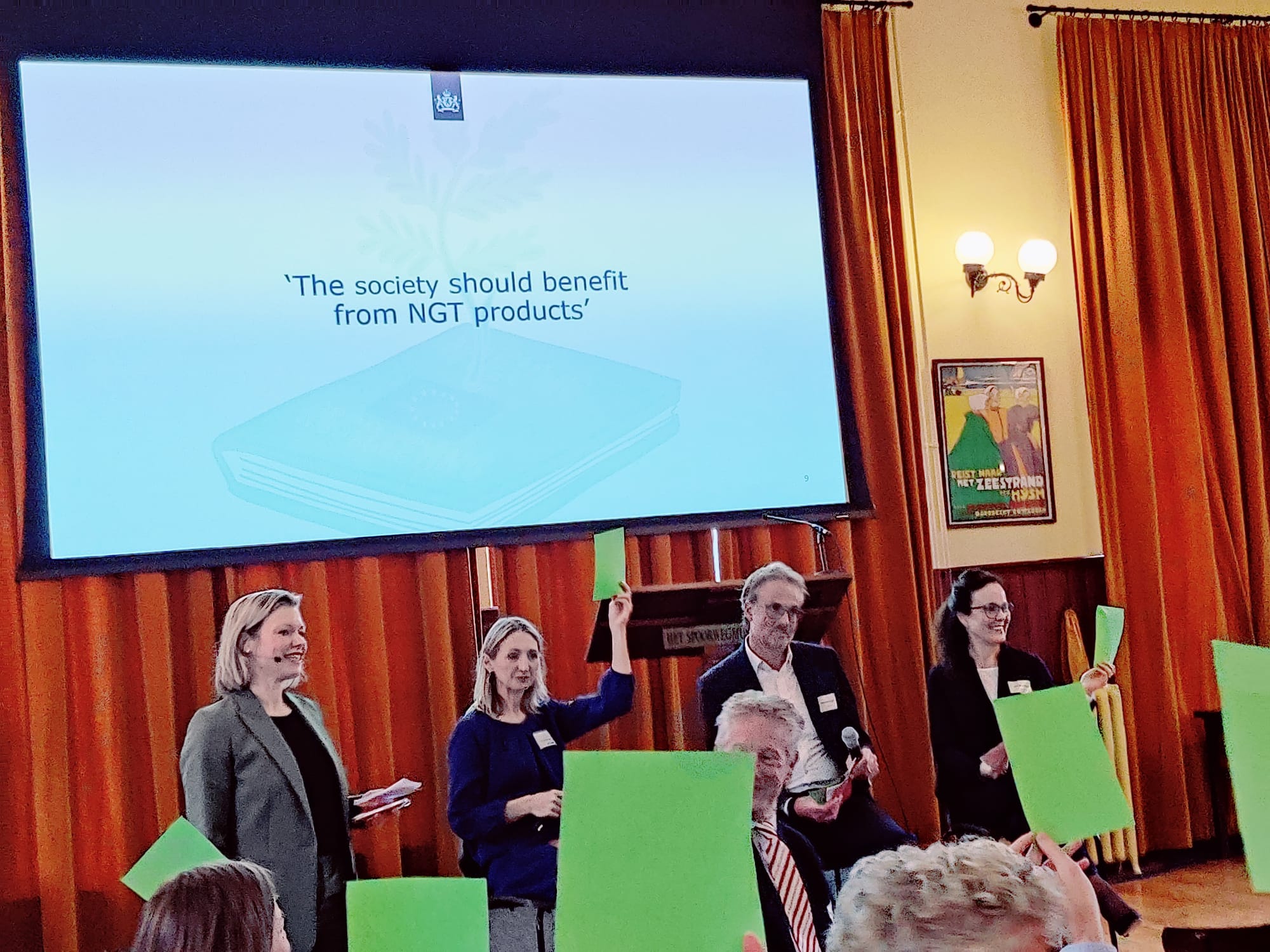 Op initiatief van het ministerie van Infrastructuur en Waterstaat (IenW) kwamen op vrijdag 14 oktober ruim 100 stakeholders uit bedrijfsleven, wetenschap, beleid en maatschappij bij elkaar in het Spoorwegmuseum te Utrecht om met elkaar in gesprek te gaan over de toekomst van nieuwe genomische technieken (NGTs), en in het bijzonder over de modernisering van de Europese regelgeving voor genetische modificatie (GGO). Irene Sacristán Sánchez, Head of Unit Biotechnology van de Europese Commissie, was speciaal afgereisd naar Utrecht om een update te geven over het lopende Europese wetgevingstraject. Ook HollandBIO mocht een bijdrage leveren: samen met Coenraad Krijger van natuurorganisatie IUCN NL en Susanne Sütterlin van het ministerie van LNV ging onze Annemiek onder leiding van dagvoorzitter Desiree Hoving in debat over het onderwerp.